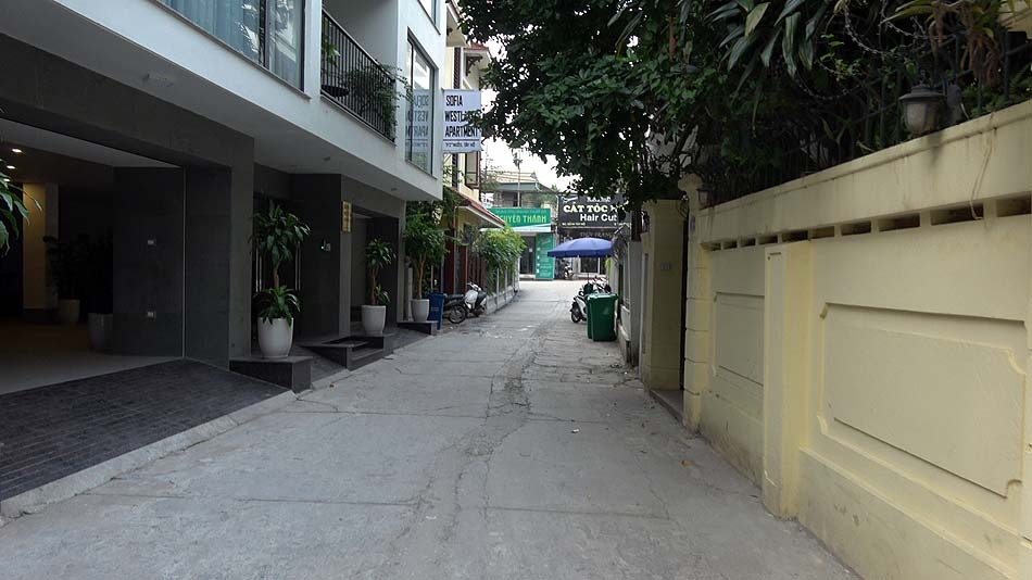 日本人学校のバスが巡回してこなくても、近くの巡回してくるサービスアパートまで歩いていただけばクリアします。 電気代をインクルードしたいと思えば、ご希望の金額を家賃に上乗せして契約をしていただければOK。 イオンモール行きのバスに乗りたいと思えば、ここからFraser Suitesまで歩いていただければOK。 フィットネスジムや朝食は、仕方が無いですね。 あと、肝心のクレーム対応ですが、これは当社が仲介として入りますので、クレーム窓口を我々が引き受けます。 これらを考慮に入れてもらい、問題なければ、250㎡の4ベッドルームが手に入ります。 ![]() 入り口も、車通りのTay Ho通りから路地を一本入ったところ。 近くに美味しいパン屋さんがあるところです。 ![]() それでは、ご紹介アパートの周りの雰囲気と室内の様子を、次のYouTube動画でお確かめください。 |