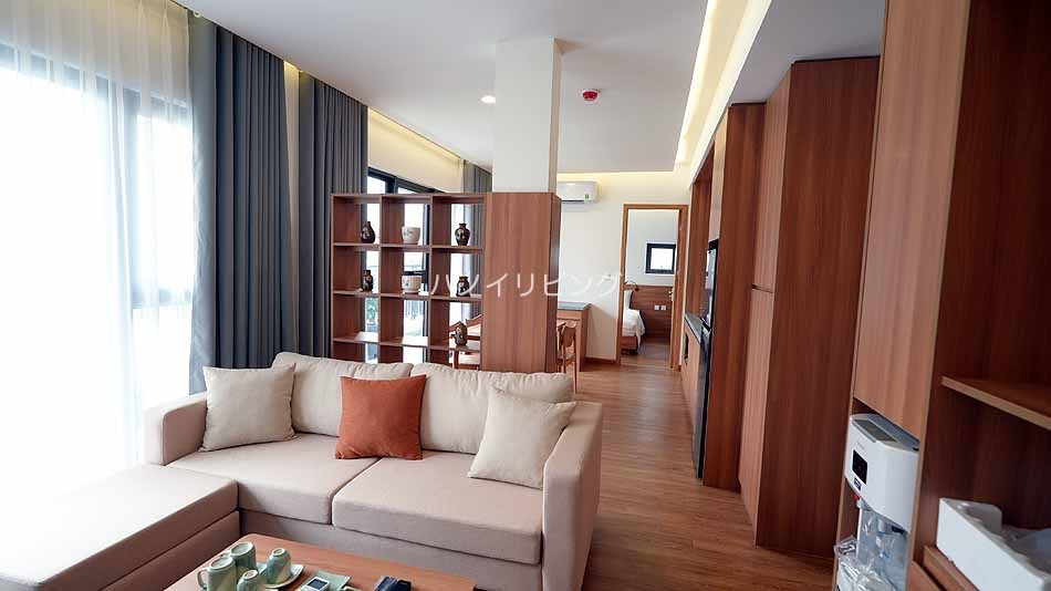 では、1bed(50㎡)、2bed(70㎡)、2bed(90㎡;最上階VIP)の3タイプのお部屋の写真と動画をご覧下さい。