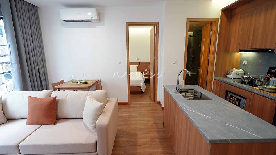 ※テレビはSmartTVですので、YouTubeやNetflixなどご自身のアカウントでログインして視聴することができます。※家賃や家賃に含まれるサービス内容は、空き状況に応じて都度変更される場合があります。弊社がご案内時にお渡しする「Guide Schedule」記載のサービス内容が最新情報となります。詳しくはハノイリビングまでお問合せください。