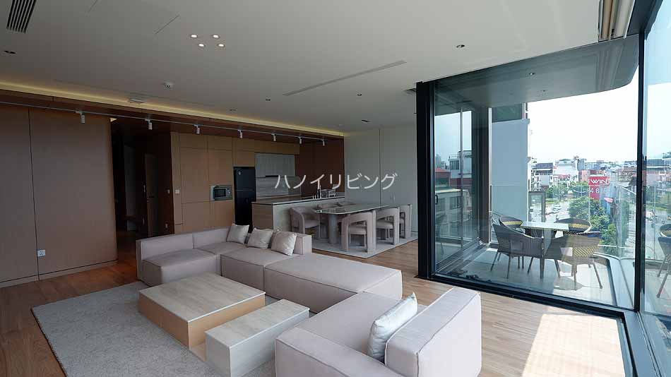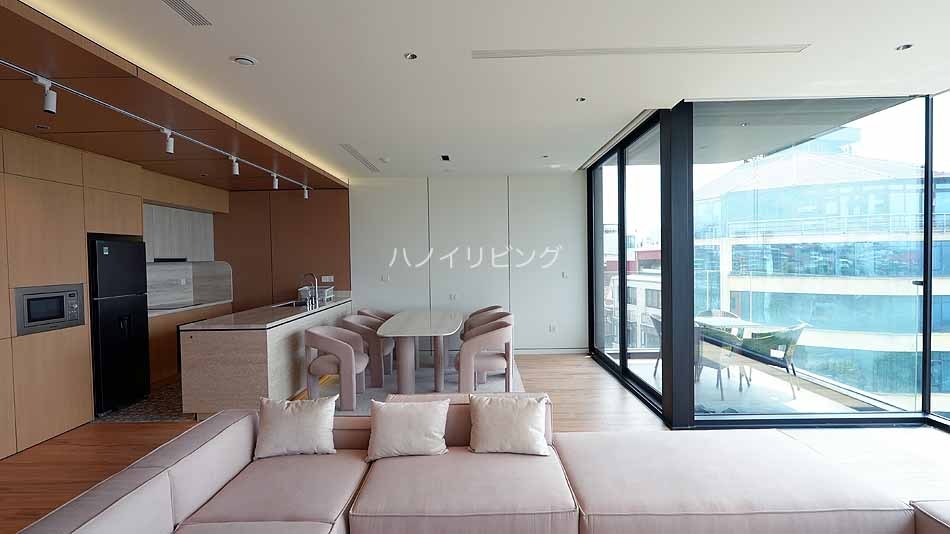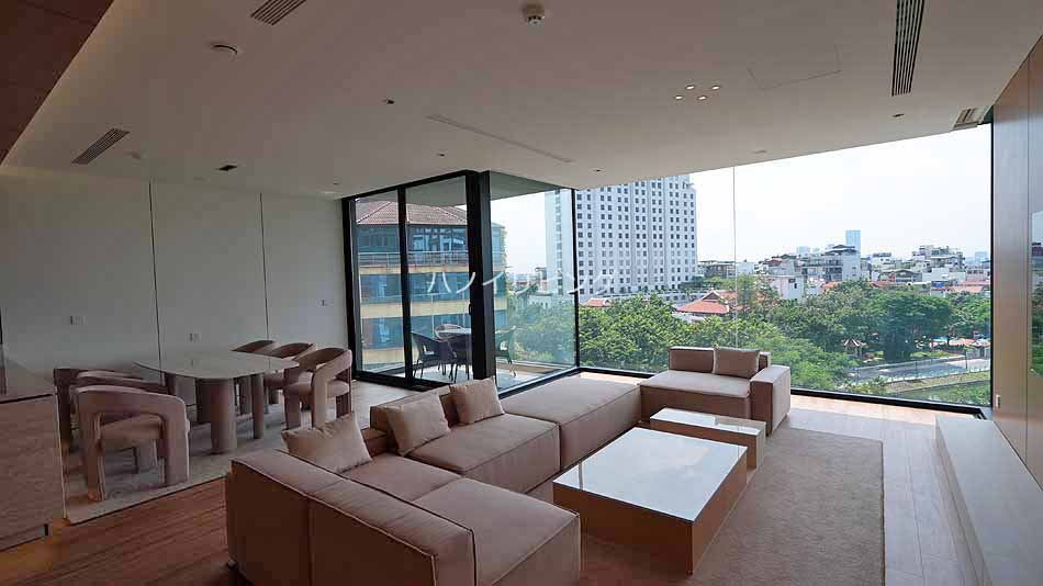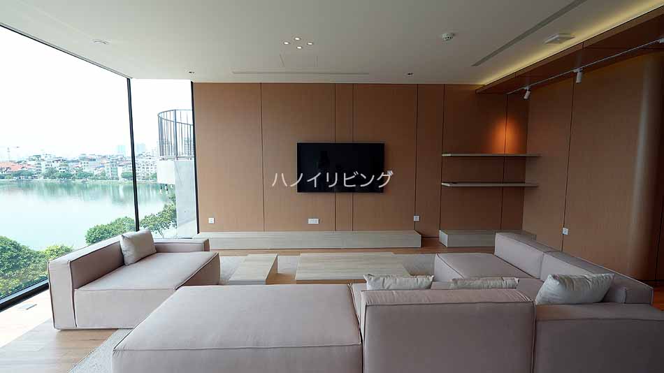※家賃や家賃に含まれるサービス内容は、空き状況に応じて都度変更される場合があります。 弊社がご案内時にお渡しする「Guide Schedule」記載のサービス内容が最新情報となります。 詳しくはハノイリビングまでお問合せください。 ![]() リビングの特注ガラスから眼下に見渡せるのは、目の覚めるLake View。 Tay Hoエリアでも数少ない「Lake Viewかぶりつき」の立地です。 ![]() ![]() ![]() ![]() 湖の眺めとともに天井高のサッシから気持の良い太陽光が入ってきます。 特注のサッシなので、カーテンが長くなりますが、上げ下げは電動式です。 また、キッチンには、