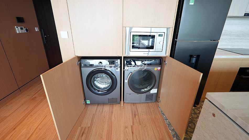 | 設 備 | 家具・電化製品一式、ビルトイン電子レンジ、ビルトインオーブン、食器洗浄機、洗濯機+乾燥機はセパレート設置、炊飯器、ダイキン製2wayエアコン(冷暖房)、Waterサーバー、IHクッキングヒーター、お湯タンク(バスタブ付きバスルームは100L、シャワーだけのバスルームは50L)、洗い場付きバスルーム、ダイキン製自動空気清浄機(アパート全室室内対象)、リビングカーテンリモコン昇降機能付き、バルコニー付き ※停電時のBack Up設備はありません |