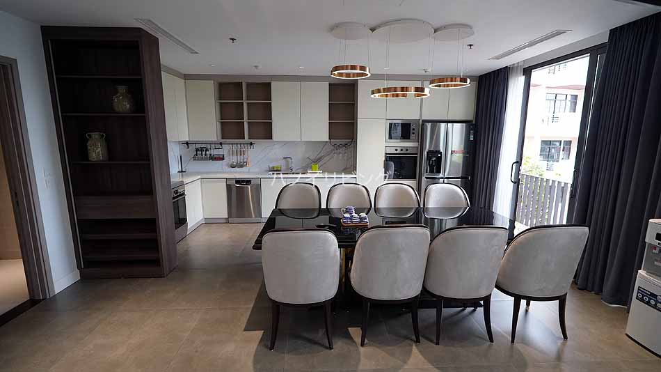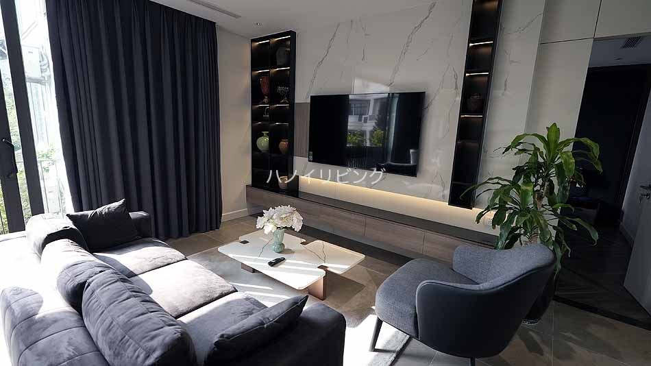 ※家賃や家賃に含まれるサービス内容は、空き状況に応じて都度変更される場合があります。 弊社がご案内時にお渡しする「Guide Schedule」記載のサービス内容が最新情報となります。 詳しくはハノイリビングまでお問合せください。 ![]() このサービスアパートを一言で表現すると、こうなります。 「Gymやプールや朝食ビュッフェのサービスなど一切付けず、7部屋ある室内のグレードを上げることに資金を投入したアパート」 これで1ベッドルームでもサービスや税金込みで1,000$を切る部屋を提供してくれています。 Kim MaのVinhomes Metropolisの2ベッドルームなら80㎡で2,000$はするところ、このアパートは95㎡と広い2ベッドルームで、家賃は1,500$です。 では、このアパートの室内を写真と動画でご紹介します。 グレードの高さをご確認ください。 ◎ 1ベッドルーム(46㎡)の室内写真&動画 ![]() ![]() ◎ 2ベッドルーム(95㎡)の室内写真&動画 ![]() ![]() ◎ 3ベッドルーム(2階建てDuplex;95㎡)の室内写真&動画 ![]() ![]() ![]() 最後に、このアパートをお勧めしたいお客様のイメージをご紹介します。