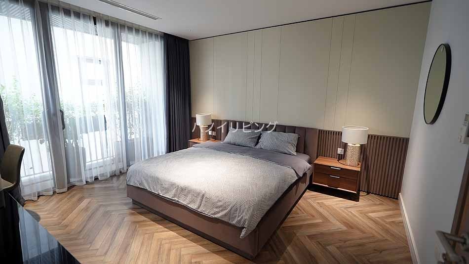 中でも「日本人学校のスクールバス」が巡回してくる人気の高い「Somerset West Point Hanoi」から、Tay Ho通りを少し下がったところにあるサービスアパート。 路地の先であるが故に、とても静かで、且つ家賃が抑えられてるアパートです。 ![]() 2023年新築の新しく綺麗な室内。 8階建て全室7部屋の小規模サービスアパートです。 【建物構成;計7部屋】 ・1階:1bed(1部屋) ・2階:1bed(2部屋) ・3階:2bed(1部屋) ・4階:2bed(1部屋) ・5階+6階:3bed_Duplex(1部屋) ・7階+8階:3bed_Duplex(1部屋) ![]() 路地の先ではありますが、しかしその路地を走る2つの路に囲まれた角地なので、窓が多く切られていて、明るい室内が実現できています。 ![]() 単身者向けの1ベッドルーム(46㎡)。 単身者+カップル様向けの2ベッドルーム(95㎡)。 ご家族連れ+複数人でのルームシェア向けの3ベッドルーム(Duplexタイプの200㎡)。 この3種類のお部屋ですが、全室7部屋だけなんです。 気を使わない設計ですね。 路地先の「隠れ家的なアパート」で、とにかく静か。 なかなか出てこない稀少なお部屋です。 では詳細情報をお伝えします。