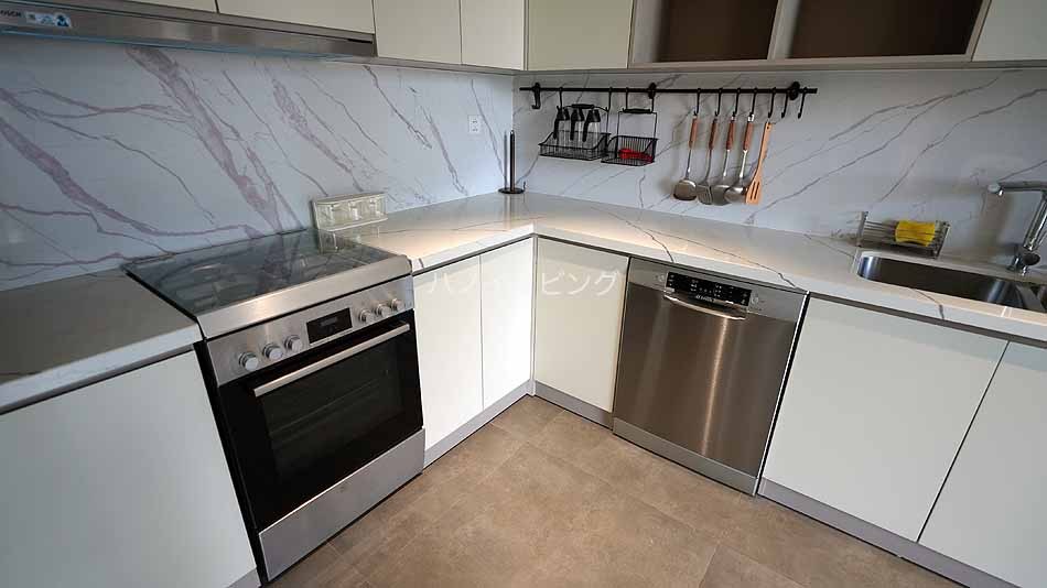 | 設 備 | 家具・電化製品一式、ビルトイン電子レンジ、ビルトイン食洗機、乾燥機能付き洗濯機、炊飯器、三菱電機製2wayエアコン(冷暖房)、Waterサーバー、お湯タンク(バスタブ付きバスルームは50L、シャワーだけのバスルームは30L)、バルコニー付き ※停電時のBack Up設備はありません |