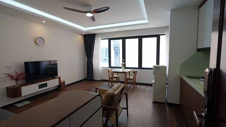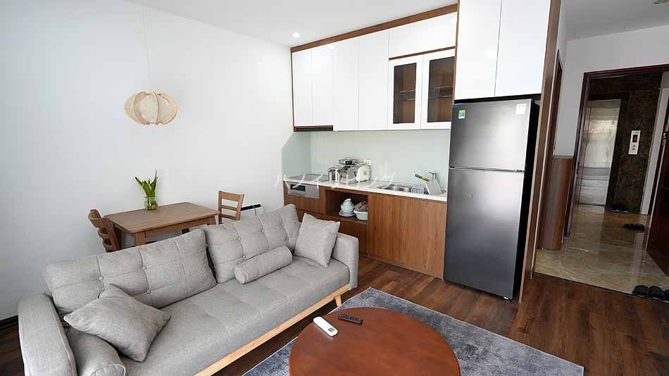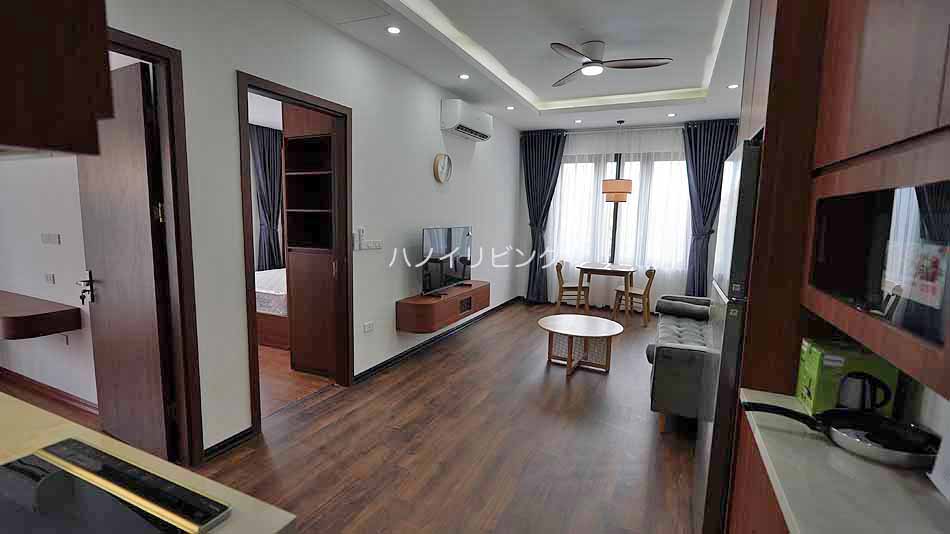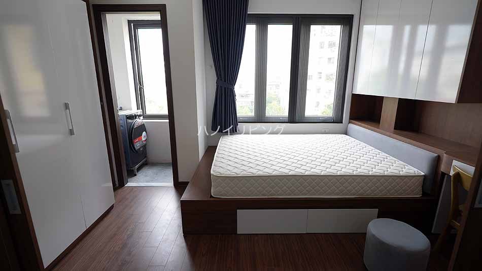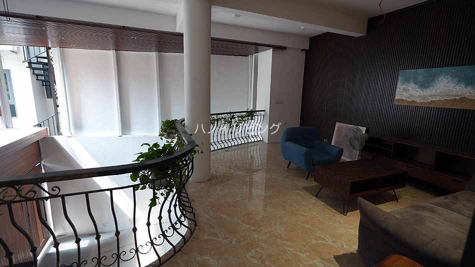 しかもその場所が絶妙なんです。 Linh Lang通りとDoi Can通りの交差点から徒歩で3分ほどの徒歩圏。 つまり、Linh LangやPhan Ke Binh通り会話の飲食店で明け方まで飲み明かしても、歩いて帰れる立地です。 少し路地の先に入ったところに、地主であるオーナーが自分の居宅と合わせてアパートを建てました。 ![]() 袋小路の路地先です。 通り抜けするバイクも車両も通らないので、とにかく静かです。 しかし、ここはハノイ一の繁華街から徒歩圏の便利な場所なんです。 ![]() ![]() 先ずこのサービスアパートのお勧めできる特徴をご紹介します。 9階建て全室15部屋の小規模サービスアパートです。 そして高層階にオーナーが住んでいるんです。